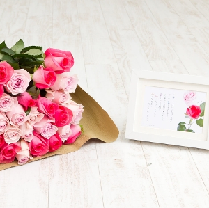 農家直送 結婚記念日に贈るバラの花束にはお名前の詩が入ったネームポエム付きの商品と花束のみの商品がございます。