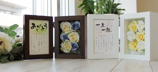 シルクフラワーと一緒にお届けする名前ポエム(ネームポエム)のプレゼントです。